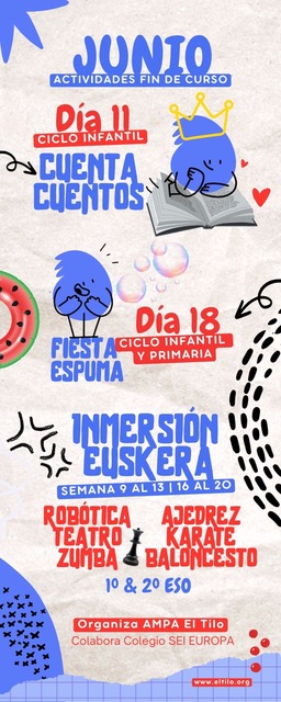 Con gan ilusión desde la Asociación de Madres y Padres AMPA El Tilo y en colaboración con el colegio SEI Europa, hemos preparado distintas actividades que se llevarán a cabo para los ciclos de Infantil, Primaria y Secundaria para despedir el curso de forma especial.